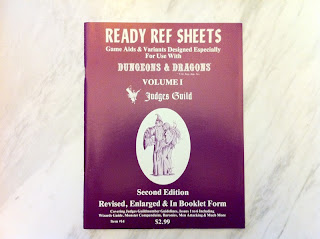 V: Ready Ref Sheets. This is sort of the Judges Guild DMG, but almost all tables. City encounters by social level, poison tables, offensive locution rules (social combat!), tables for ruins, verdict and punishment tables. A really great resource.